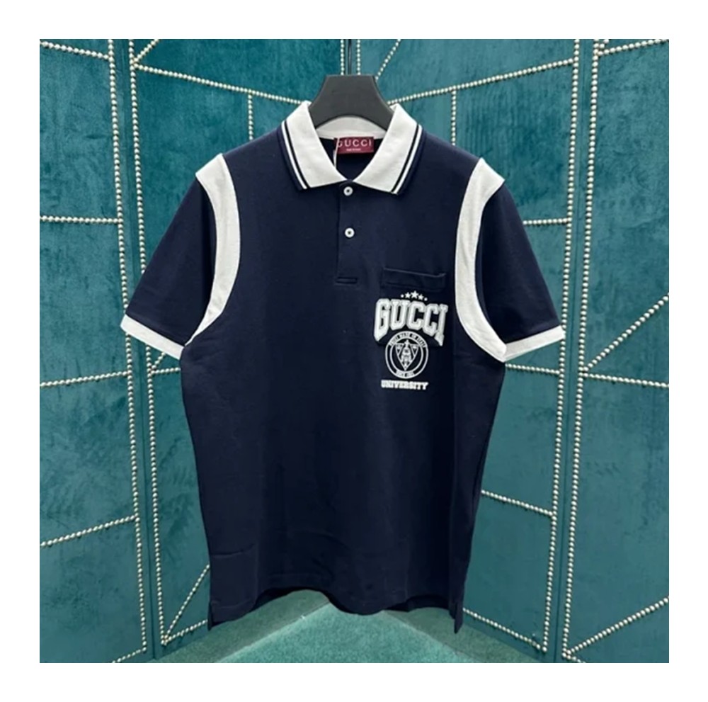 구찌 로고 코튼 피케 폴로 셔츠 네이비